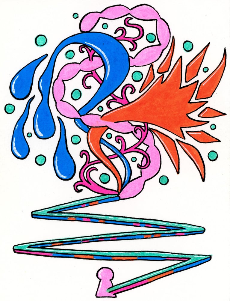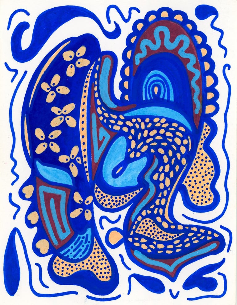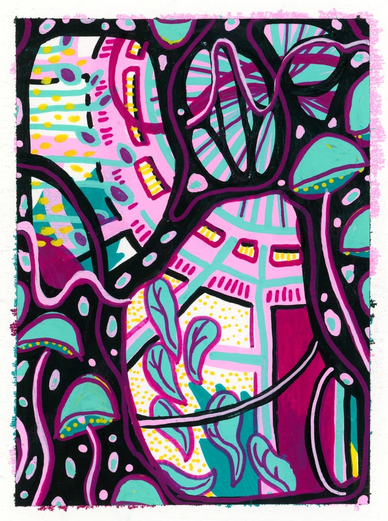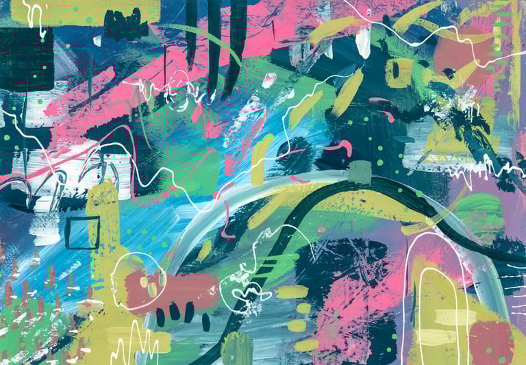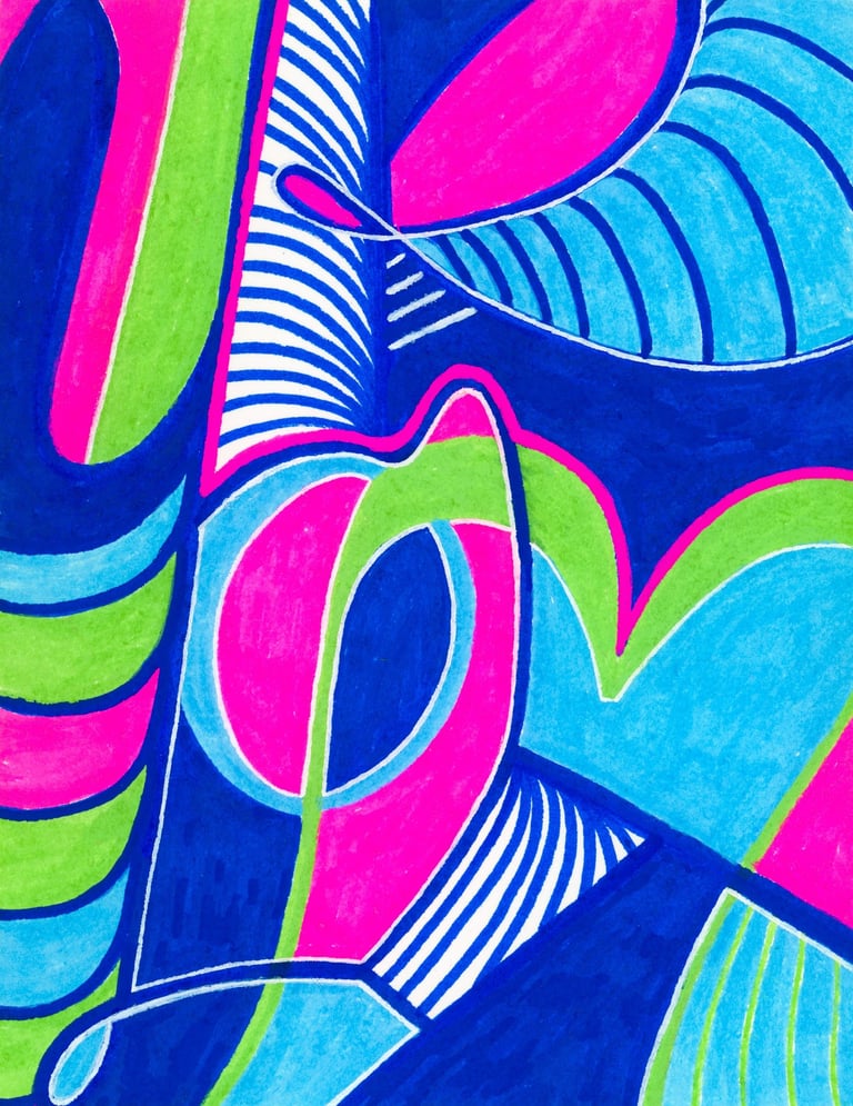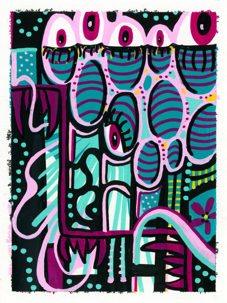 This collection explores bold geometry, stylized structure, and intuitive rhythm. While the shapes may seem planned, each composition is built through a responsive, instinctive process - what feels missing, what wants to echo, where contrast needs to land. I follow a call-and-response approach, letting each line or form guide the next until the piece feels resolved. Some works lean abstract, others more playful or graphic, but all share a foundation in dynamic structure and vibrant contrast.