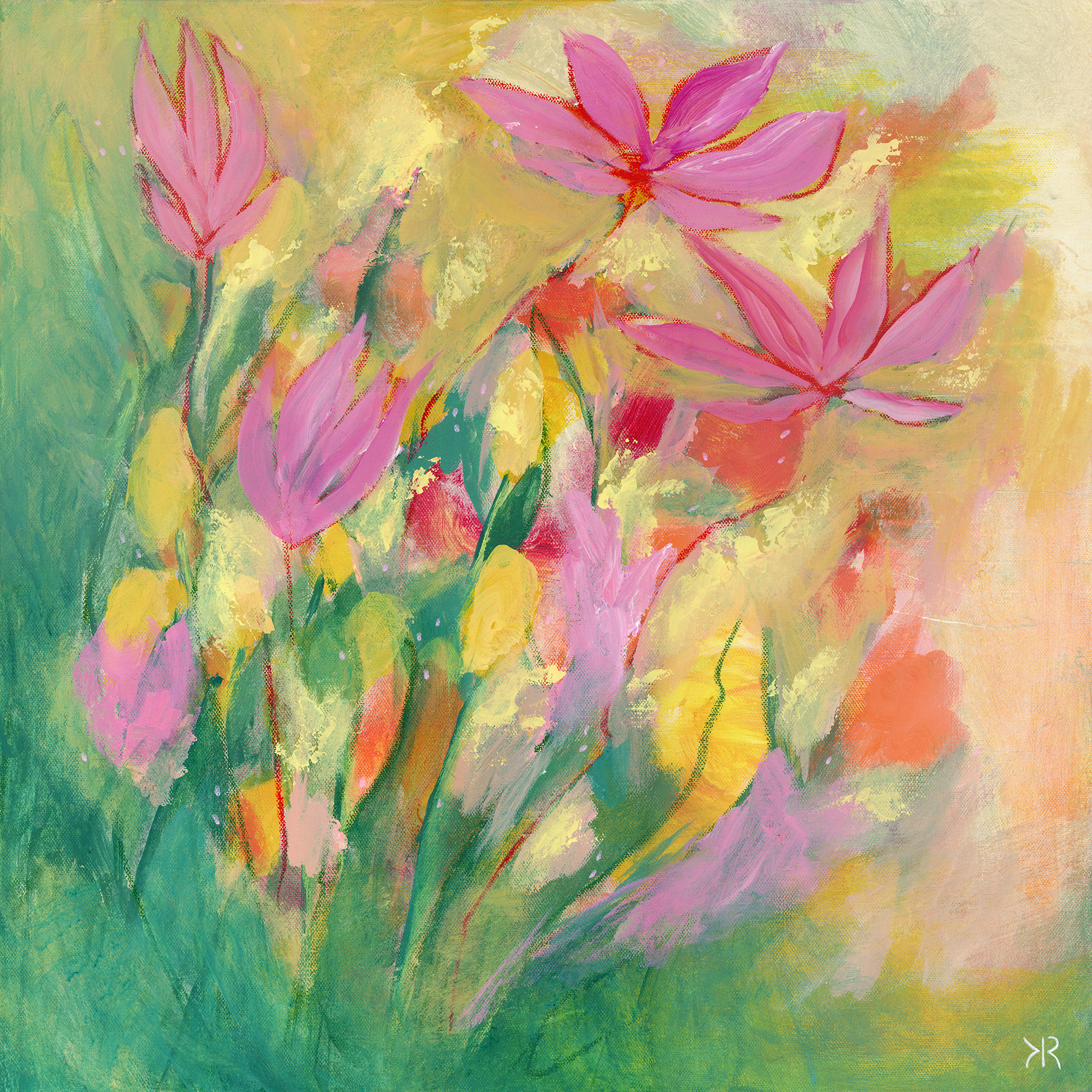 Alongside her abstract work, Ruble creates expressive illustrations that blend vibrant color palettes with organic forms. These pieces are rooted in themes of personal growth and connection to the natural world. Drawing from flowers, shapes, and spontaneous mark-making, her illustrations radiate liveliness and intention - balancing emotional depth with playful energy.
